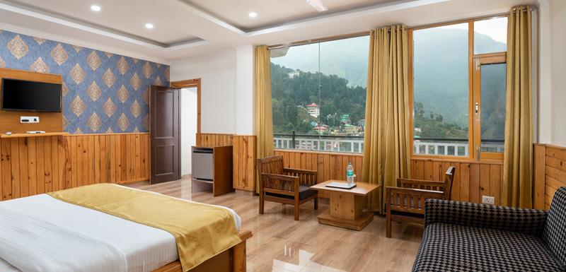 The Maharaja Room is equipped with modern amenities including free Wi-Fi internet, flat screen TV, tea and coffee maker, and reliable inverter power backup to ensure uninterrupted comfort. Guests can also enjoy prompt room service and convenient elevator access, making the Maharaja Room a perfect blend of elegance, comfort, and convenience for a memorable mountain getaway.